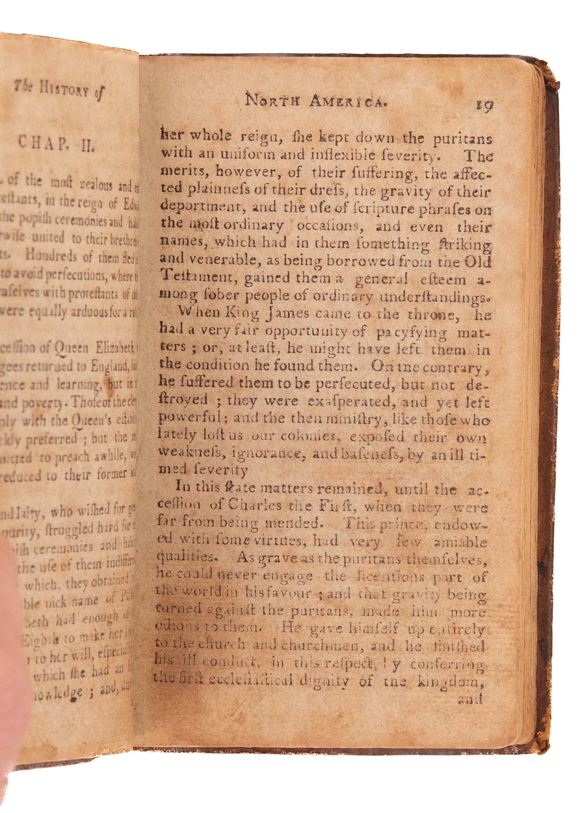 Very desirable Second Edition [with additions] of Cooper's History of North America, comprising what is essentially the first history of the American Revolution designed for the young. After a brief section describing in the Native Americans' physical appearance, general deportment, conflicts, and death rituals, etc., the author speculates that future generations will likely view the late revolution in North America as the "most singular phenomenon that ever appeared in the political hemisphere of any nation." The majority of the volume is dedicated to America’s struggle for independence, citing passages from the Declaration of Independence and focusing on battles of the Revolutionary War. The volumes six engraved plates also orbit around the American Revolution, illustrating the Boston Tea Party, the Battle of Bunker Hill, and other key moments in the struggle for liberty.