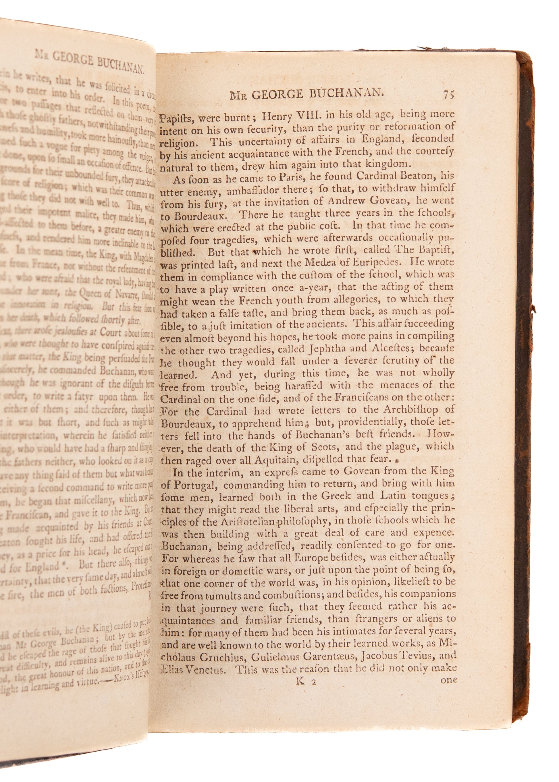 A very nice early imprint of John Howie's significant history of the Scottish Covenanters. In it, he documents both prominent Scottish figures, especially religious reformers and martyrs (like John Knox, George Wishart, Patrick Hamilton), and little-known pesrons of faith who suffered for Christ in the Scottish Reformation and The Killing Time (16th-17th centuries).