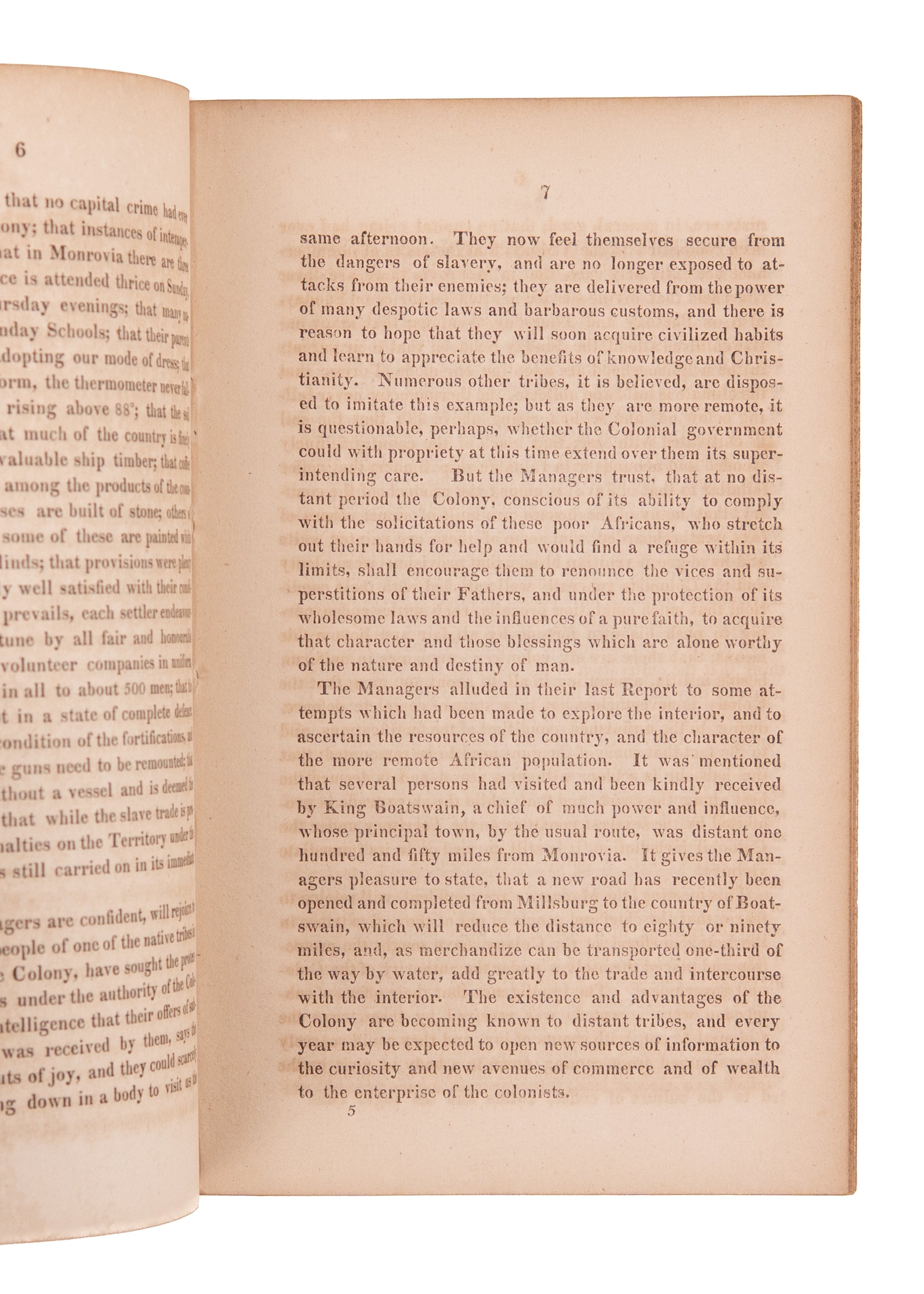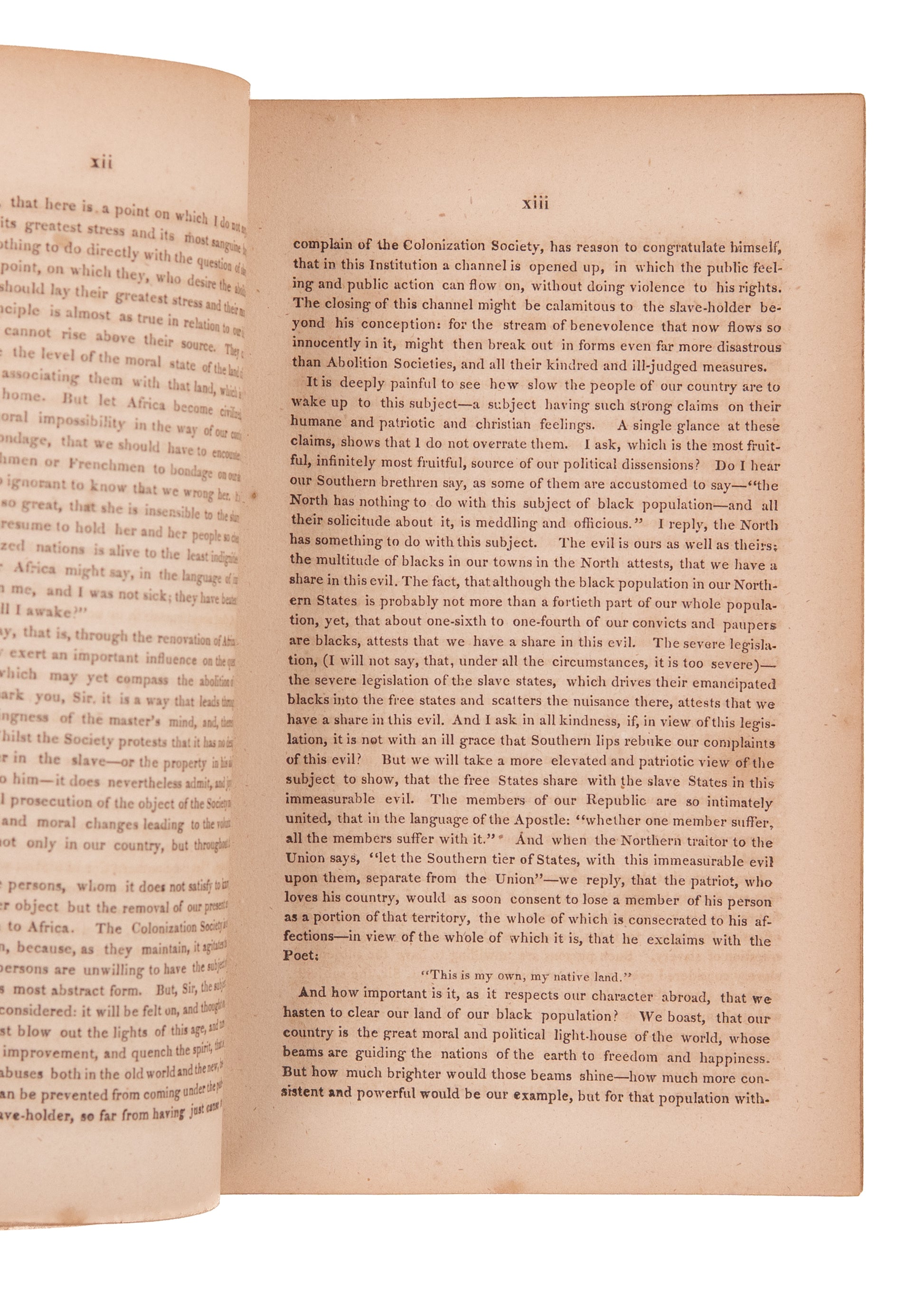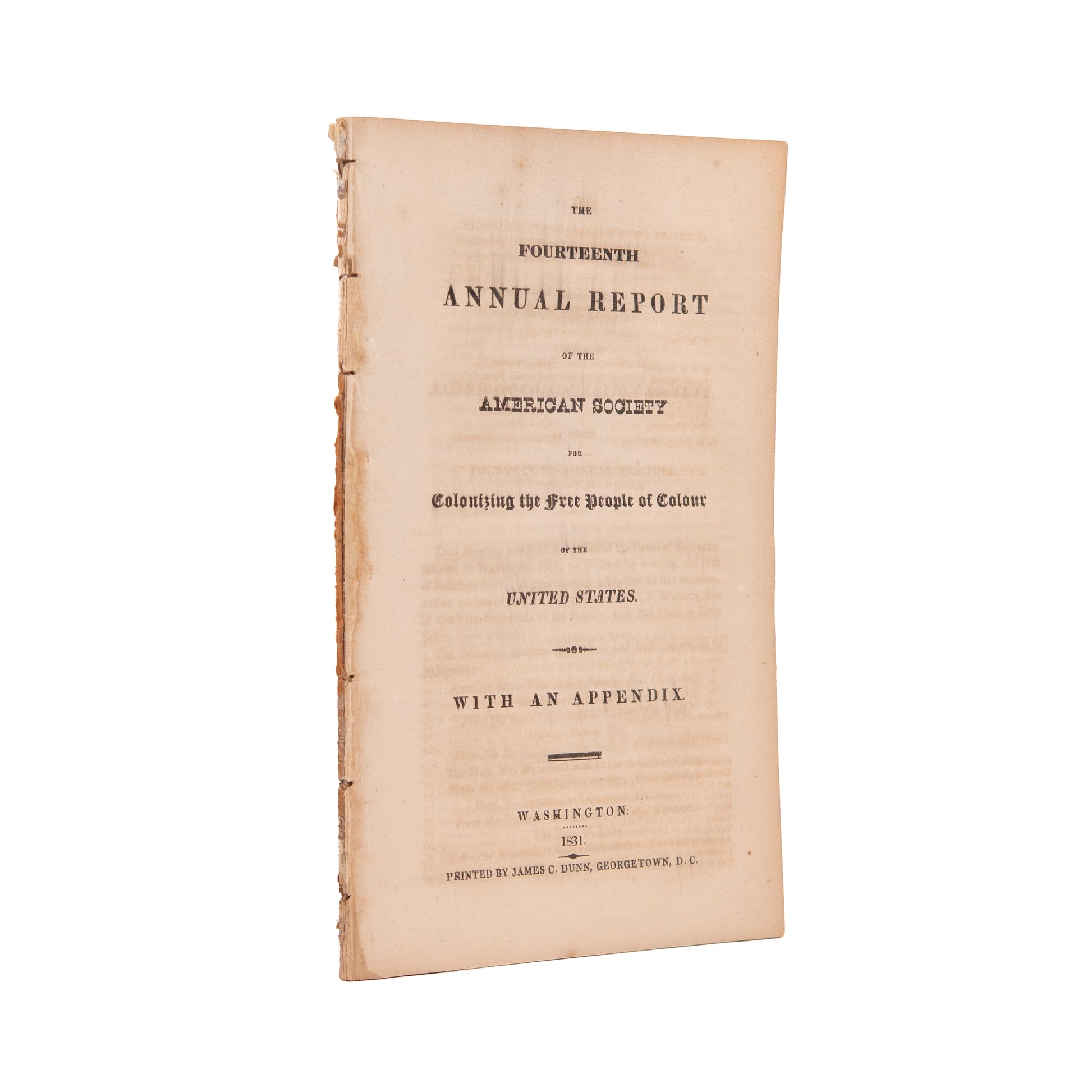 [Slavery, Abolition, Liberia, Colonization Society]. The Fourteenth Annual Report of the American Society for Colonizing the Free People of Colour of the United States. With an Appendix. Washington. James C. Dunn. 1831. 35pp + Appendix