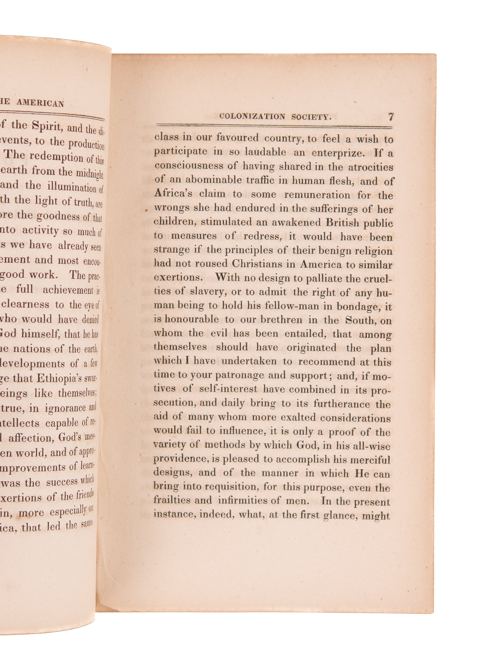 Very rare sermon by one of the most significant religious voices associated with the Colonization Society. James Milnor [1773-1845] was a member of the early abolitionist, Pennsylvania Society [1798], a member of the House of Representatives from Pennsylvania, and Rector of St. George's Chapel in New York City.