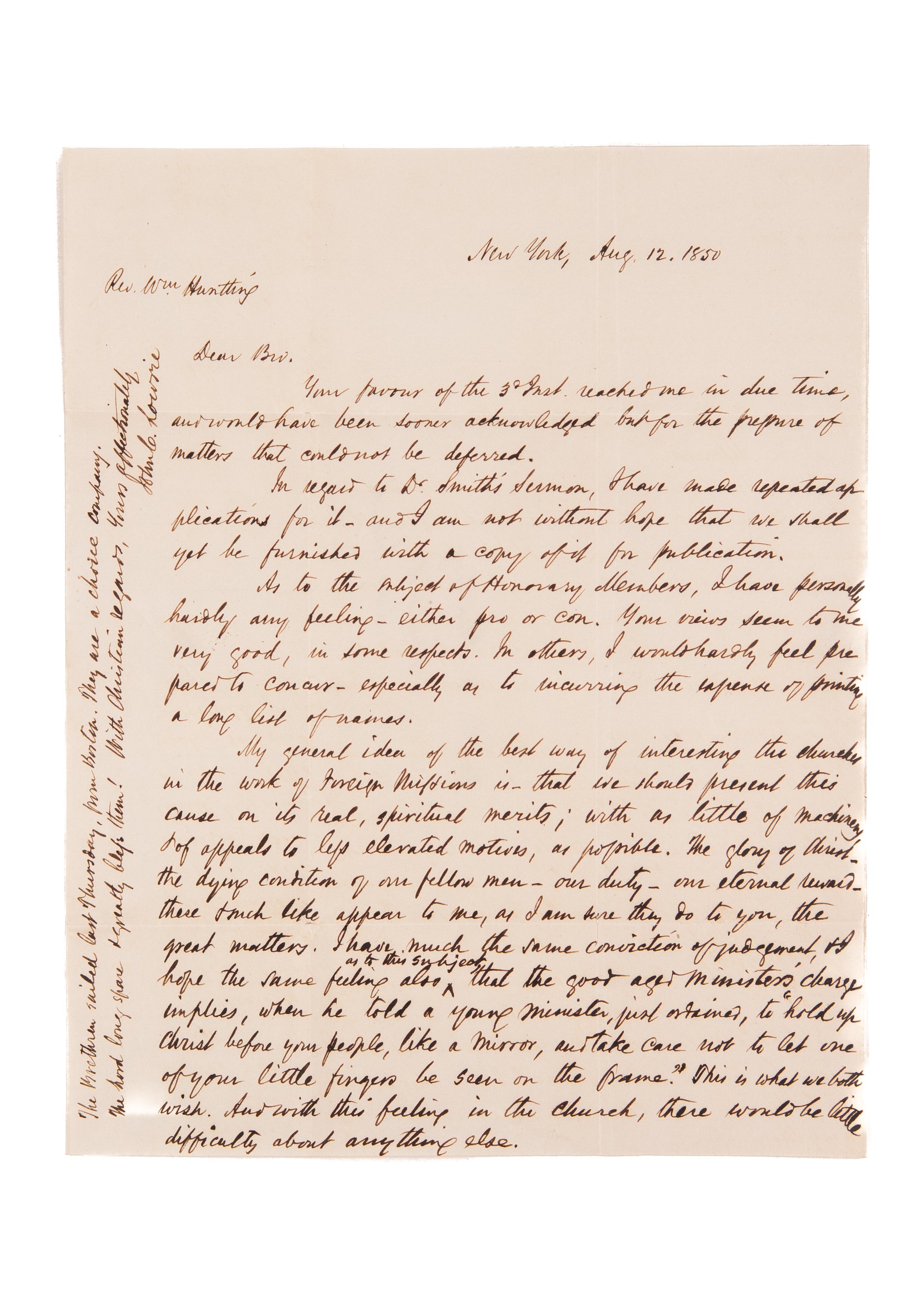 1850 JOHN C. LOWRIE. Unpublished ALS on Foreign Missions by Pioneer Presbyterian Missionary