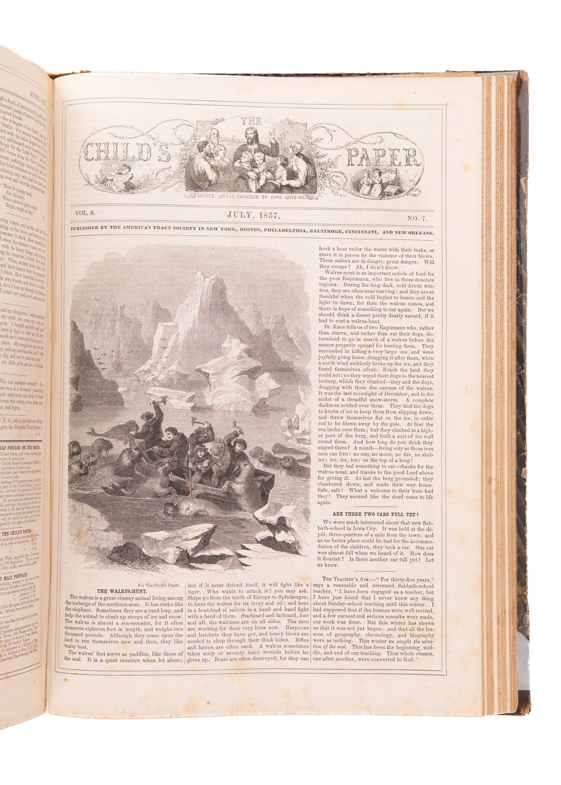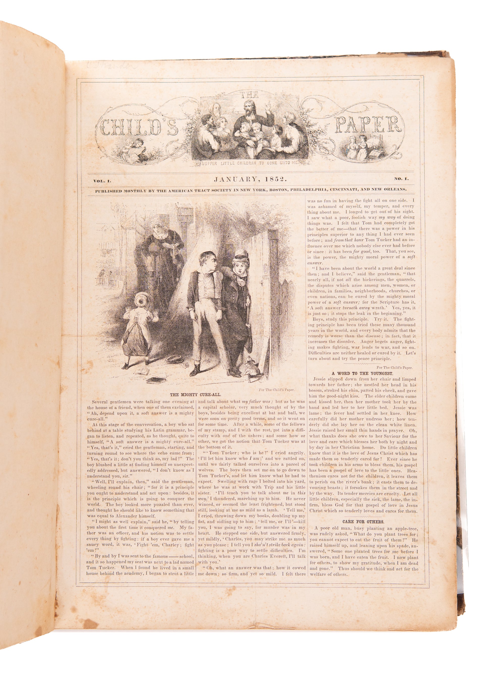 [American Tract Society, Juvenalia]. The Child's Paper. Volumes 1-8, January, 1852 through December, 1859 Complete. New York, Philadelphia, Boston, Cincinnati, and New Orleans. American Tract Society. 1852-1859. 384pp.
