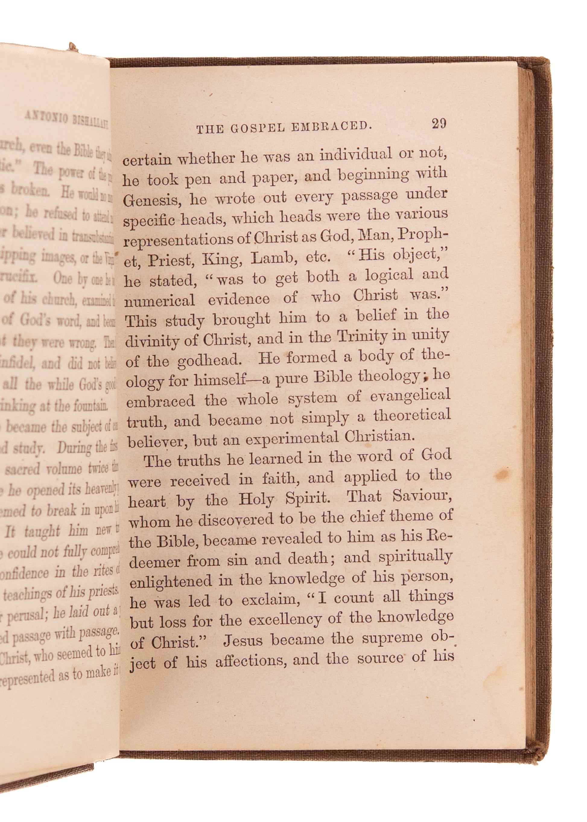[Lebanon, Arab Americans]. Charles Whitehead. Sketch of Antonio Bishallany, A Syrian of Mount Lebanon. New York. American Tract Society. Nd. c.1856. 232pp.
