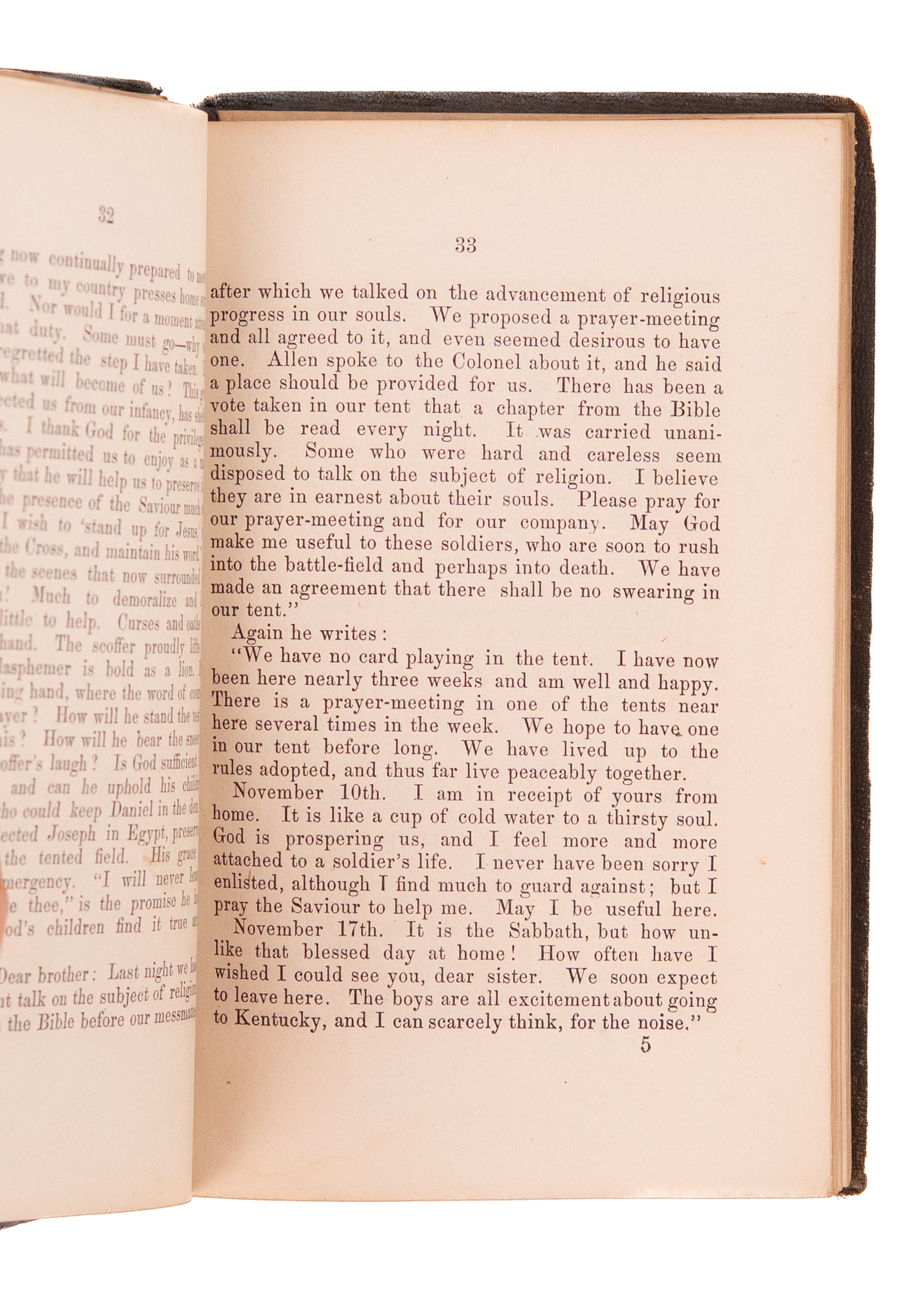 The memoir is unusual in the way it records John and Charles shared efforts to retain their ethical practices and Christian life in the midst of the War. They write back home regarding everything from the evils and suffering of the war itself and the grind it lays on the soul to the ungodliness of soldiers and their gambling, swearing, drunkenness, etc., with hints at the rampant prostitution and disease that accompanied it. An unusually intimate, religious view of soldier life.