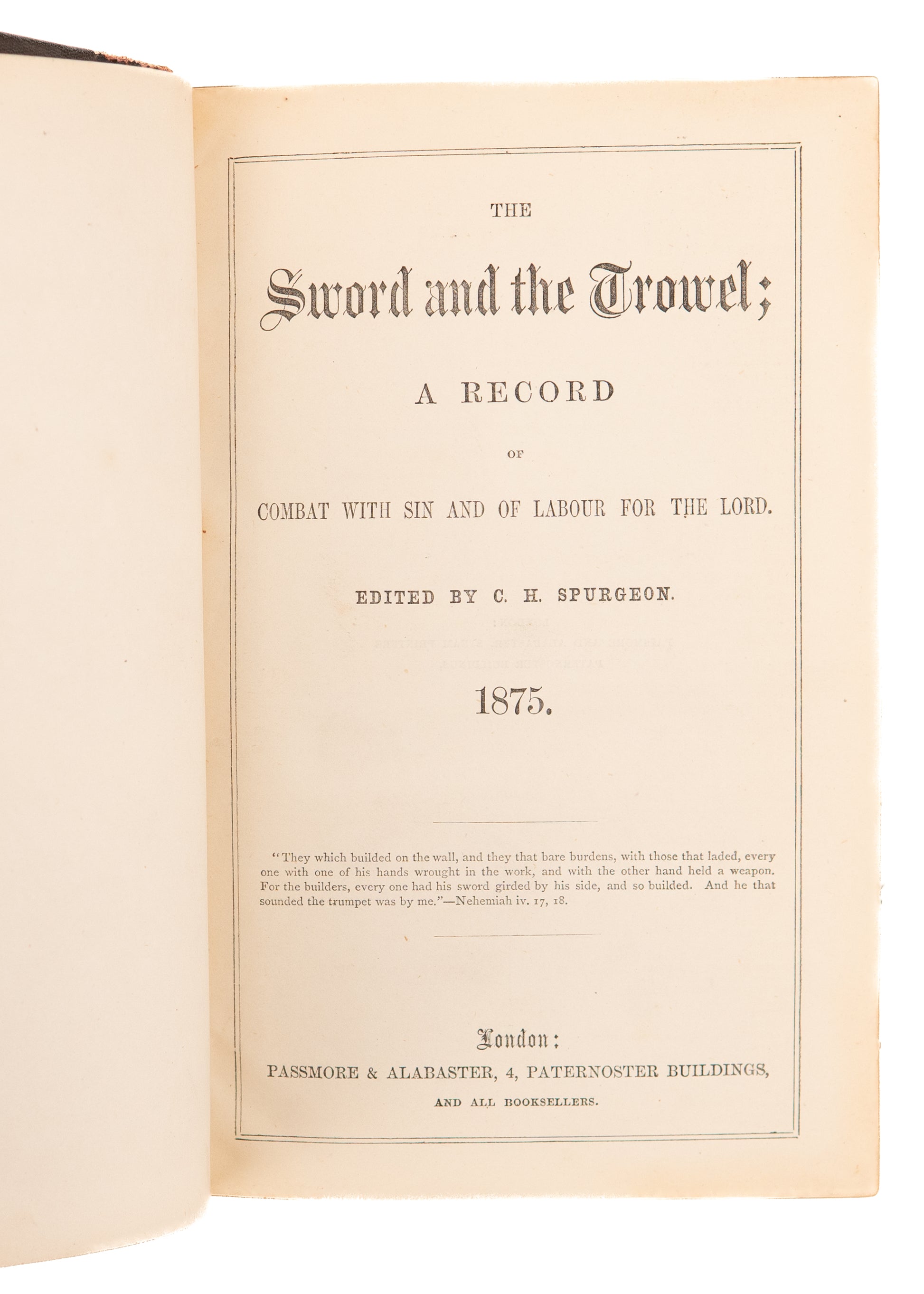 Spurgeon, C. H. [ed.]. The Sword and Trowel; A Record of Combat with Sin and of Labor for the Lord. London. Passmore and Alabaster. 1875. 588pp.