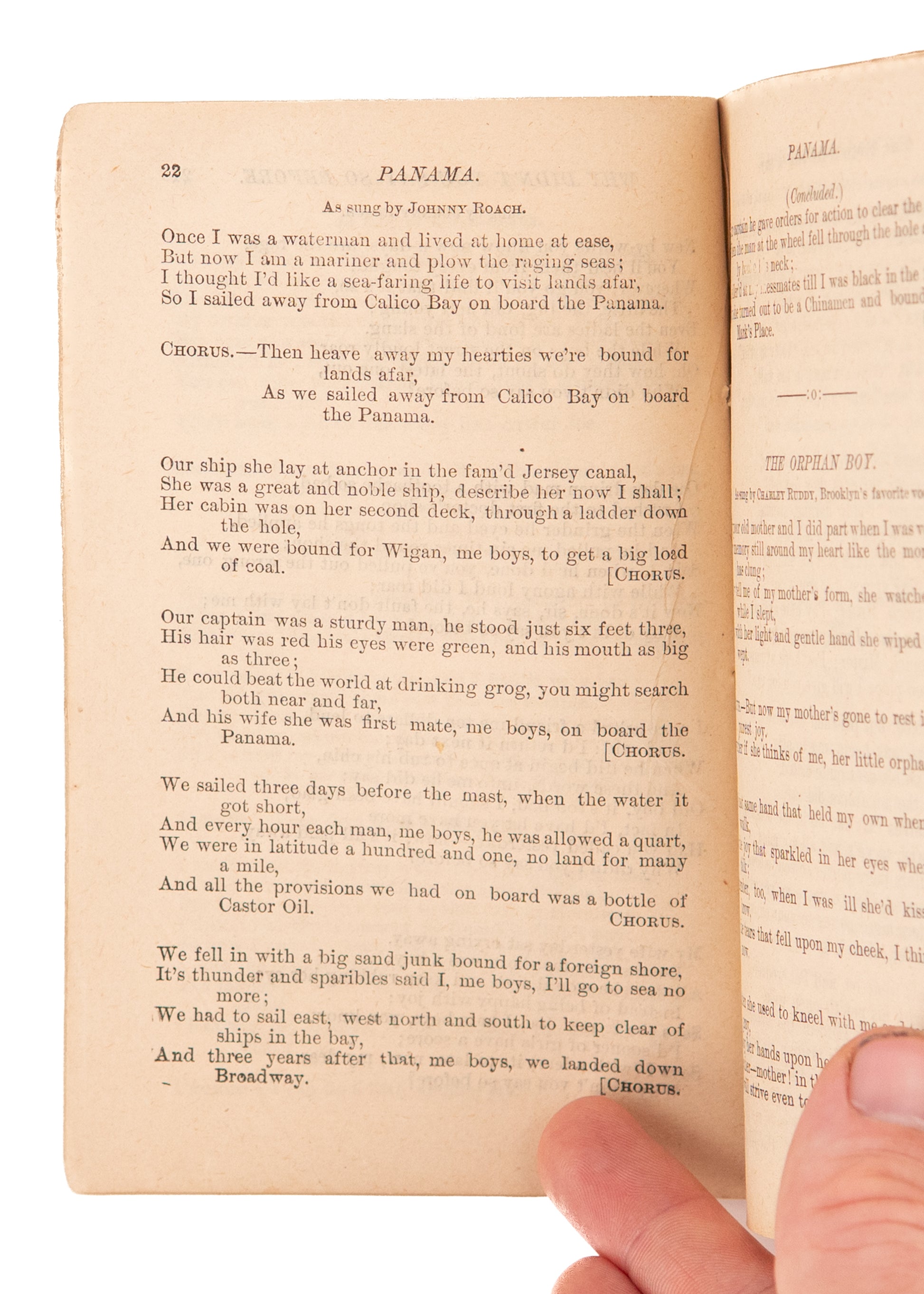 1875 JOHNNY ROACH'S SONGSTER. Rare Songster with Immigrant, Temperance, & Mormon Songs.