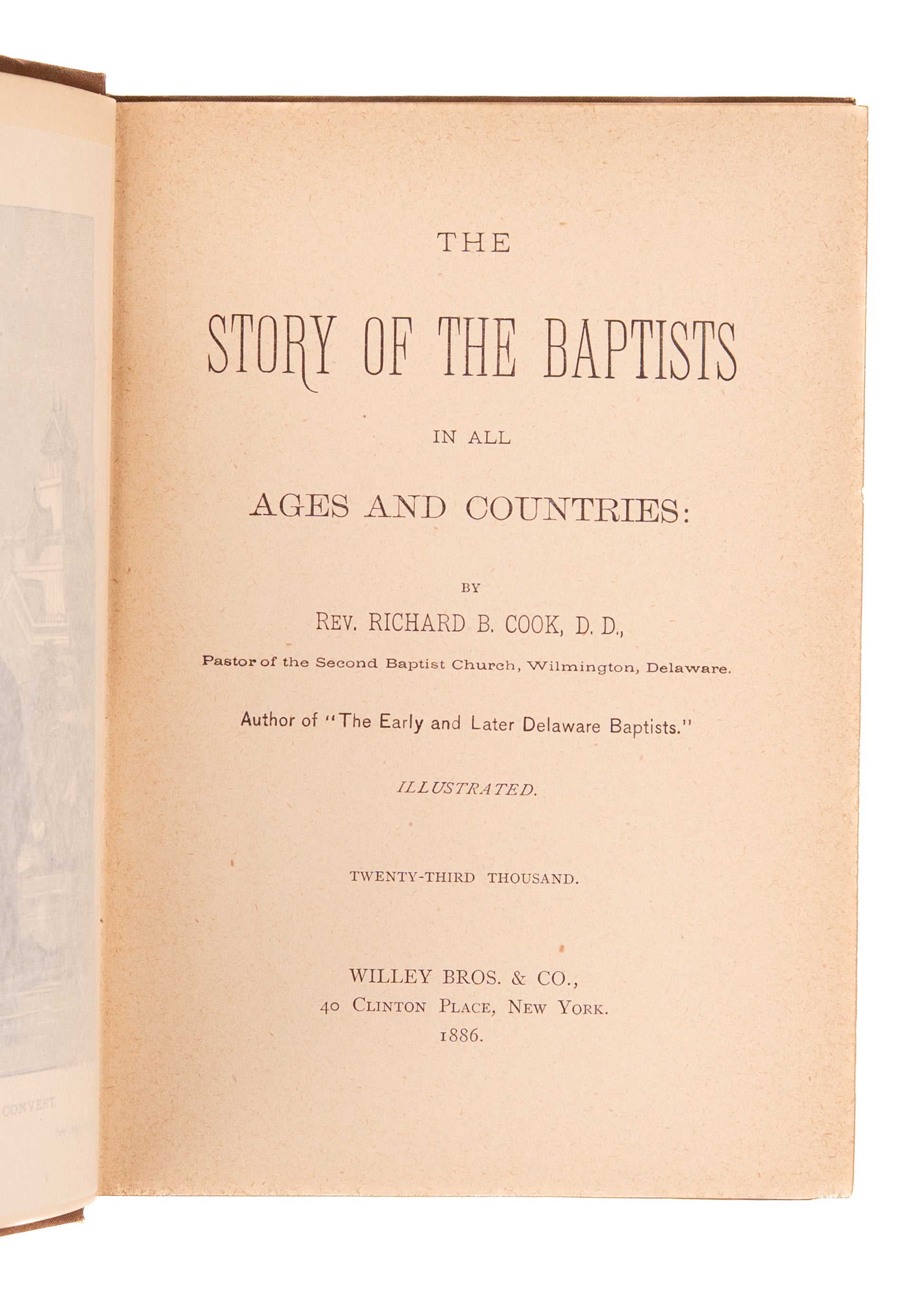 Cook, Richard B. The Story of the Baptists in all Ages and Countries: Illustrated. New York. Willey Bros & Co. 1886.
