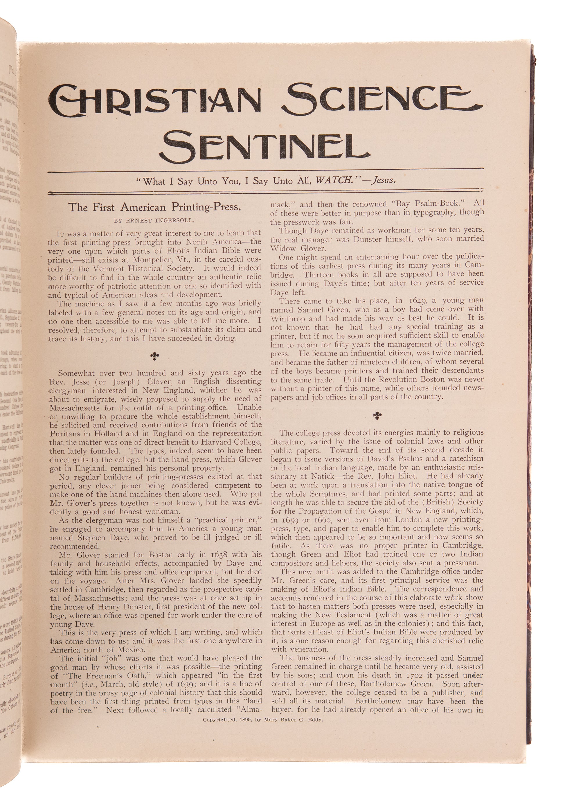 1899-1900 MARY BAKER EDDY. Rare Second Year of The Christian Science Sentinel. Faith Healing, Anti-Vax, &c.