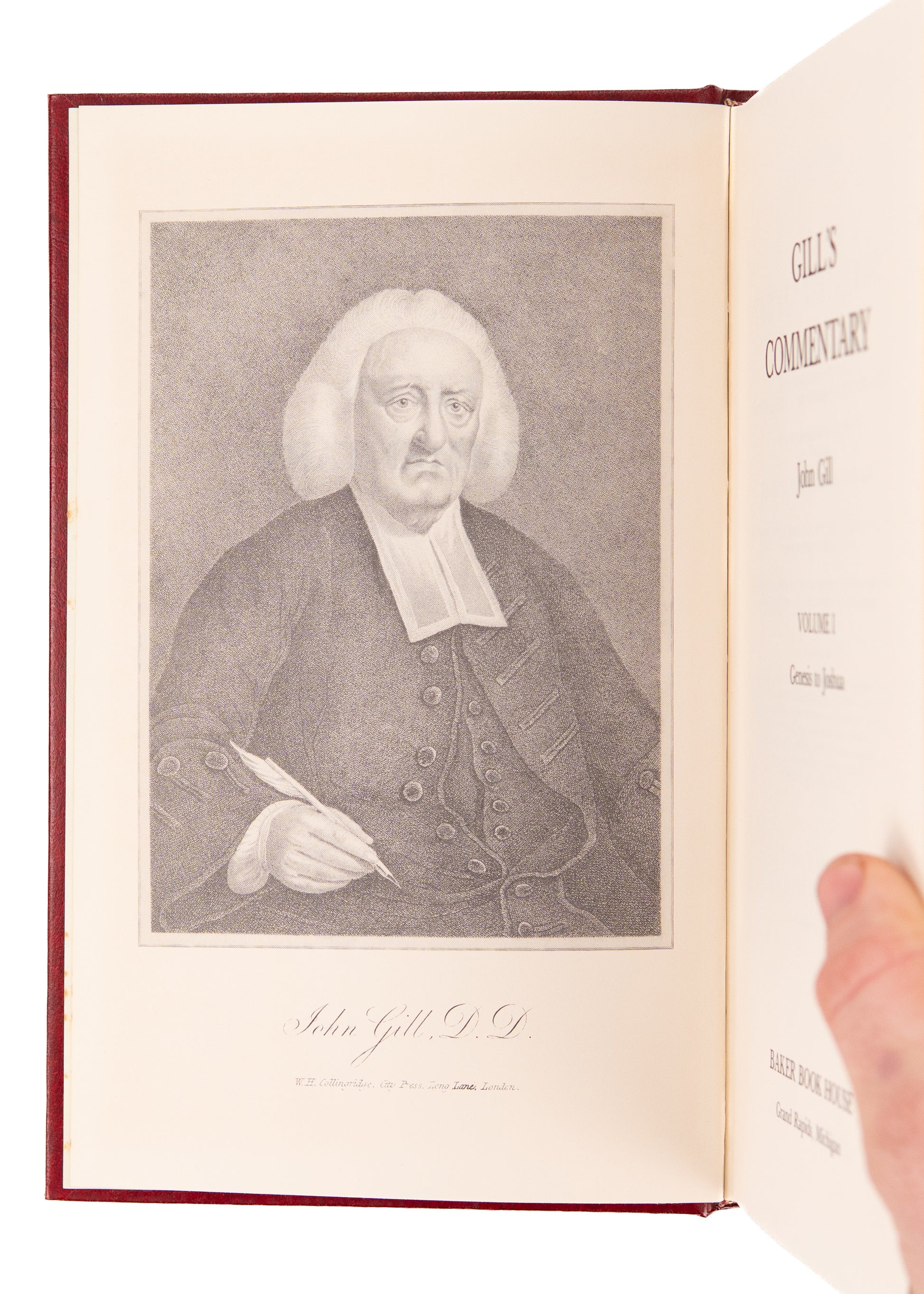 Gill, John. Gill's Commentary. John Gill. Volume I-VI. Genesis to Revelation. Grand Rapids, Michigan. Baker Book House. 1980. 919pp. + 954pp. + 1050pp. + 903pp. + 1020pp. + 1085pp.