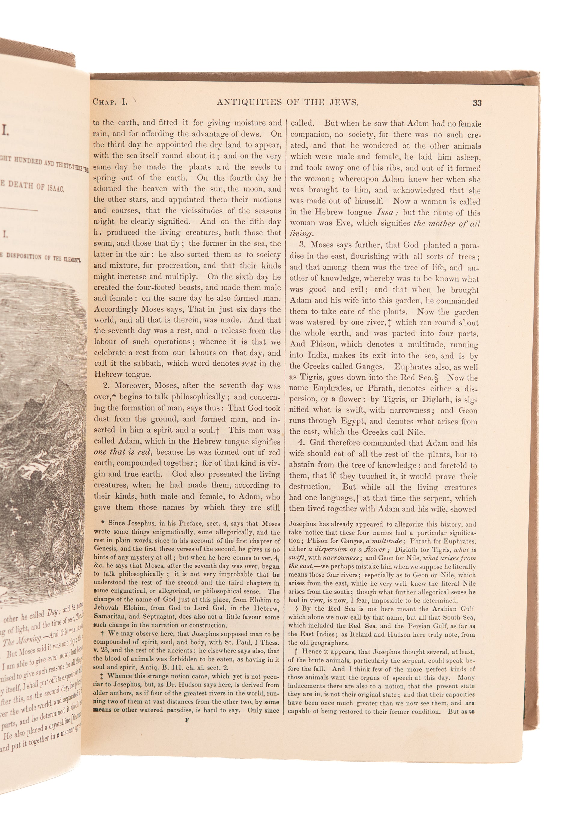 A very attractive and nicely preserved Victorian trade edition of Whiston's classic translation of Josephus. Elaborate trade embossed large 4to binding with silver, black, and red foiling. A very nice example.