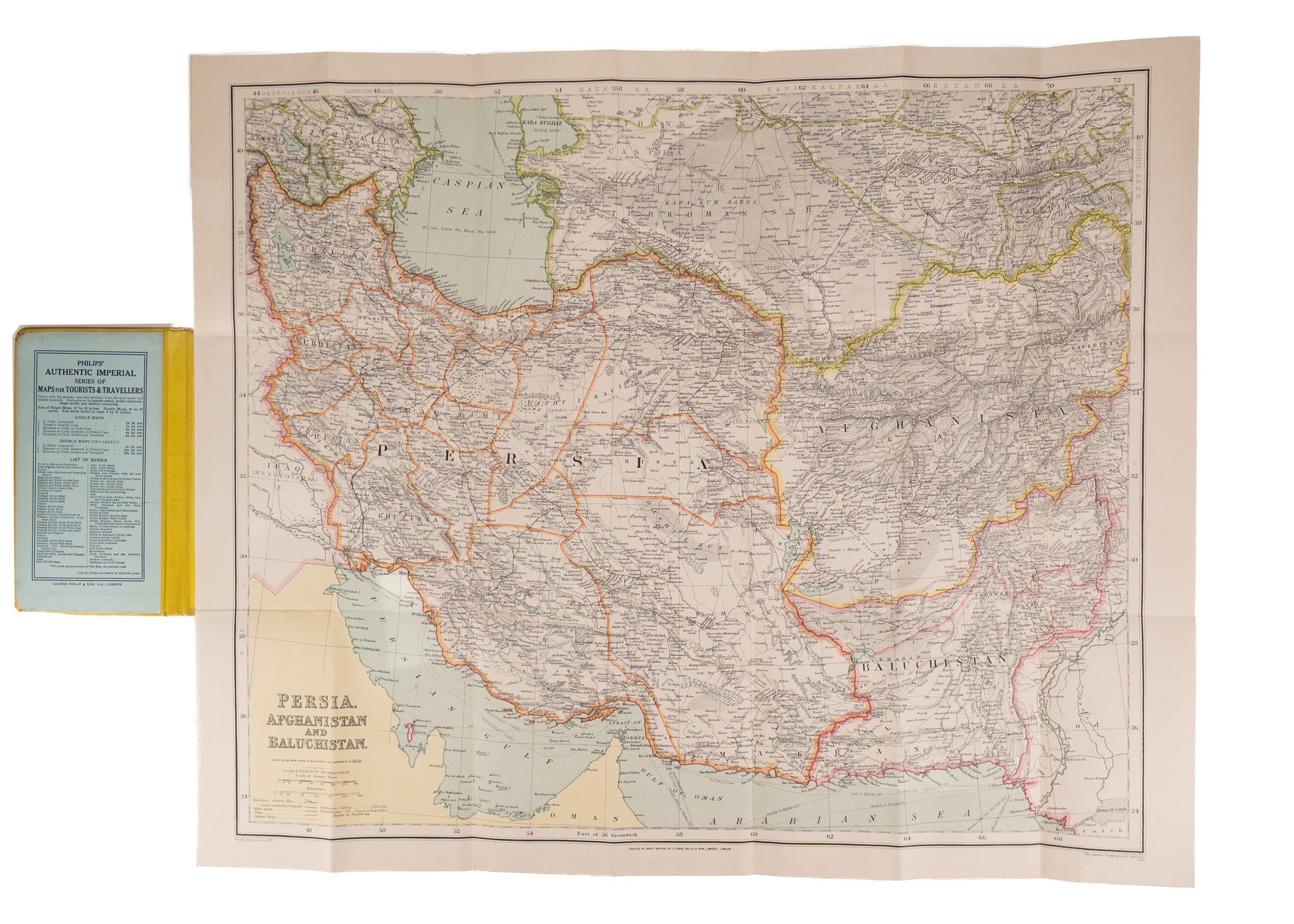 Philips' Authentic Imperial Maps for Tourists & Travelers: Persia, Afghanistan and Baluchistan. Printed in Great Britain. George Philip & Son LTD. 32 Fleet Street. Nd. c.1920.