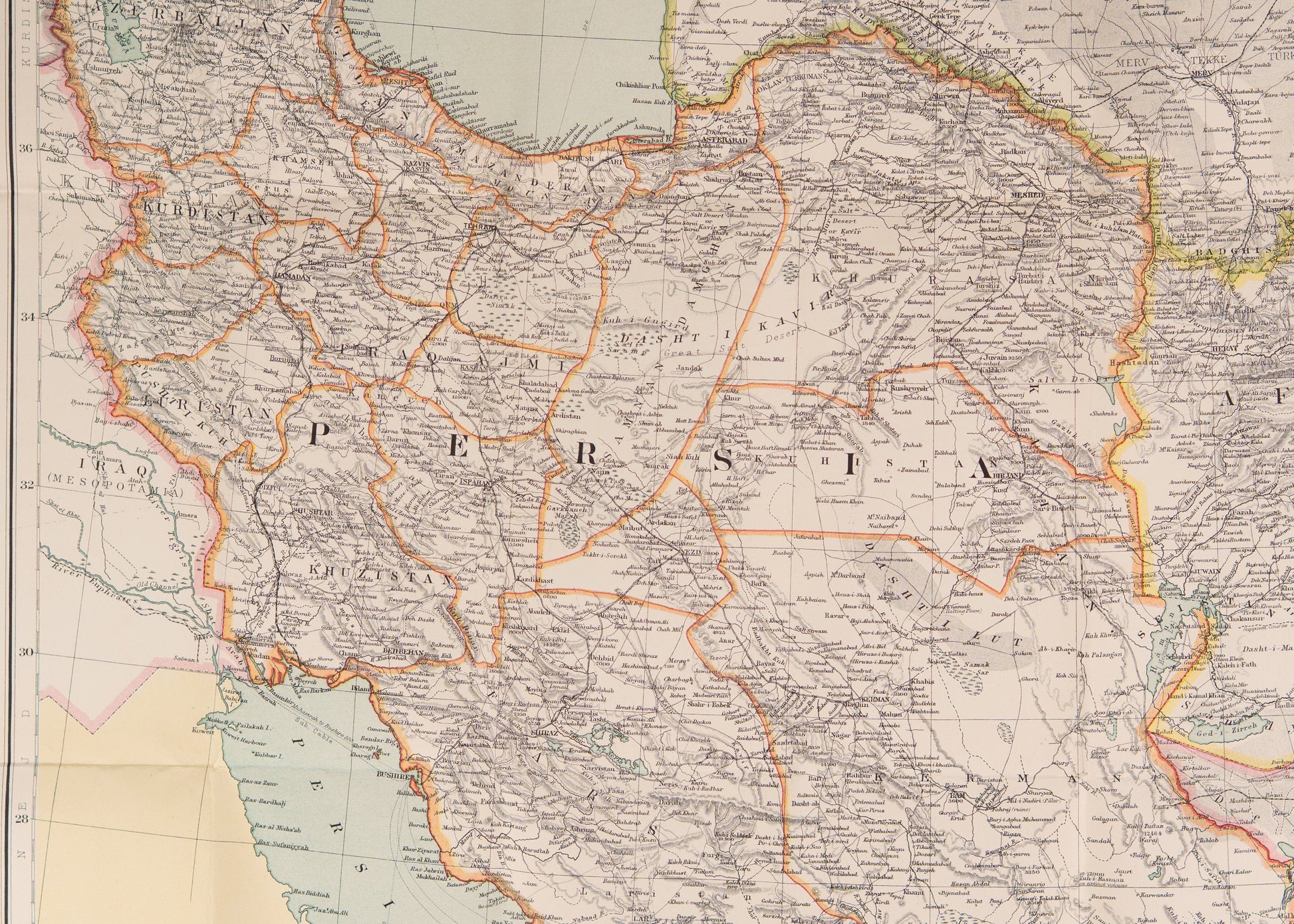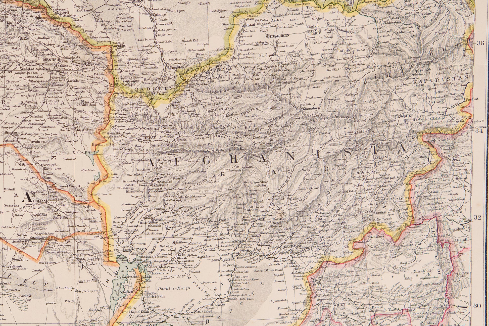 A superbly preserved example of Philips' "authoritative" colonial map of Afghanistan, Persia [Iran], and what roughly equates to modern Pakistan, i.e. Baluchistan [Balochistan]. Aside from some minor soiling to cloth, pristine.